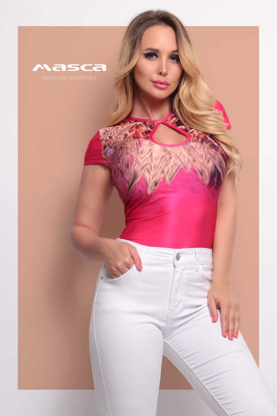 Kuviollinen pinkki paita kurkistusaukolla. Vartalomyötäinen, seksikäs paita erottuu edukseen upeiden kuvioiden ansiosta. Naiselliset yksityiskohdat tekevät tästä paidasta oikein katseenvangitsijan. Värikäs paita lisää ripauksen elovuutta ja viehättävyyttä arkipukeutumiseesi.